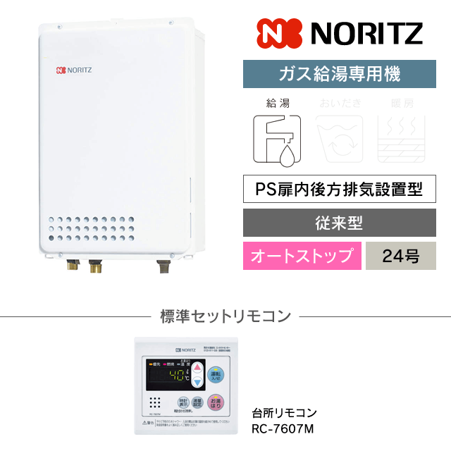 【工事費込み】GQ-2439WS-TB-1|ノーリツ ガス給湯専用機|PS扉内後方排気設置型|24号|オートストップ