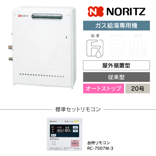 【工事費込み】GQ-2037RX|ノーリツ ガス給湯専用機|屋外据置型|20号|オートストップ