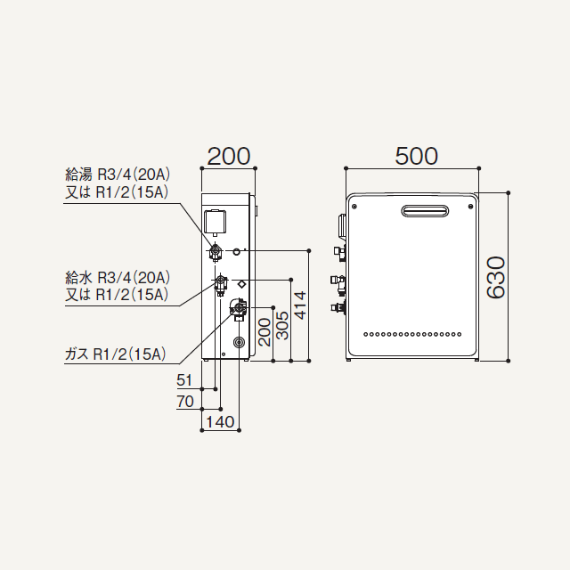 | 外形寸法 | 高さ630×幅500×奥行200mm |