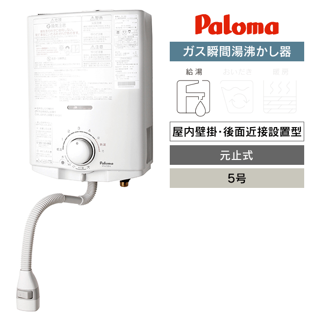 【工事費込み】PH-5BN|パロマ ガス瞬間湯沸器・小型湯沸器|屋内壁掛型|5号|元止式