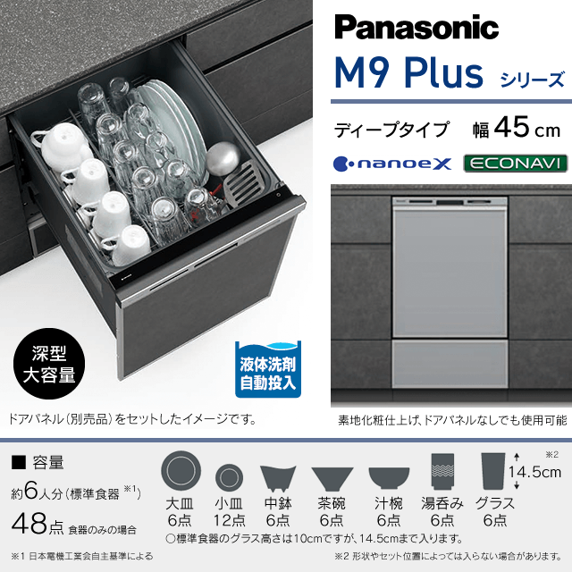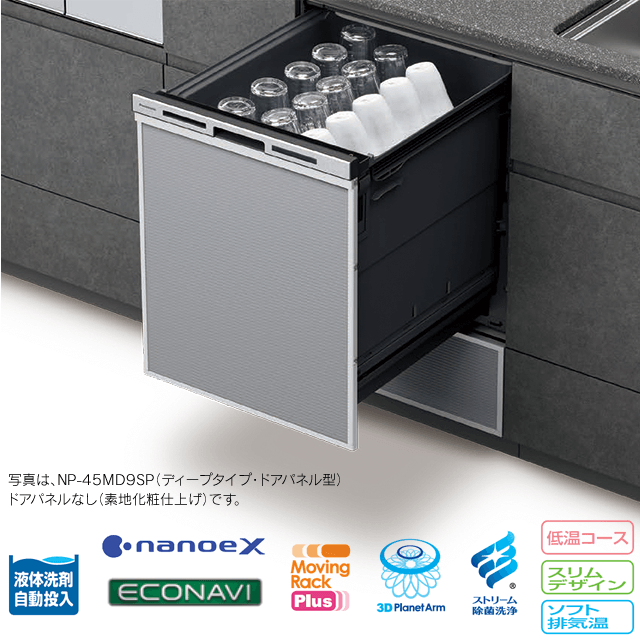 【工事費込み】NP-45MD9SP|パナソニック 食洗機 M9 Plusシリーズ ドアパネル型|幅45cm・ディープ(深型)タイプ・スライドオープン