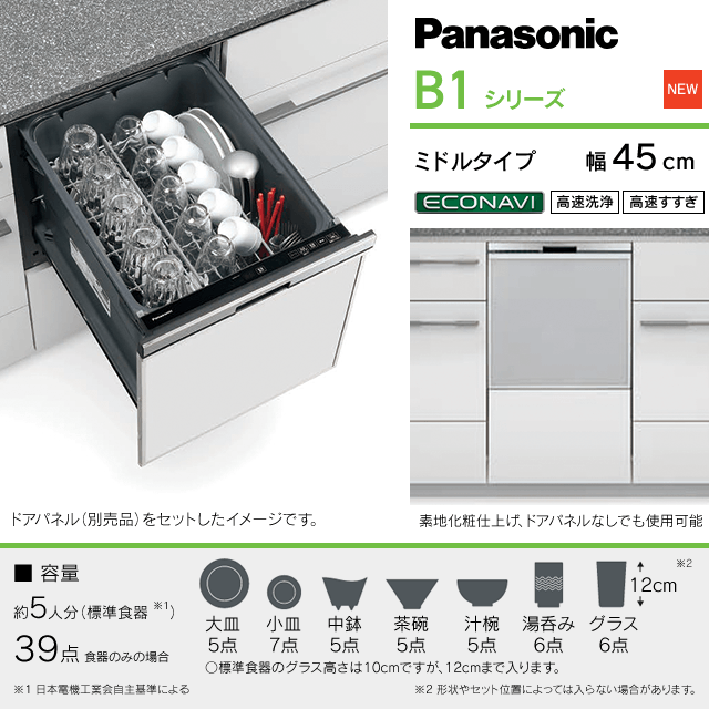 【工事費込み】NP-45BS1S|パナソニック 食洗機 B1シリーズ ドアパネル型|幅45cm・ミドル(標準)タイプ・スライドオープン[2026年4月26日発売予定]