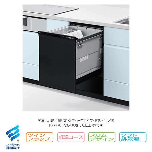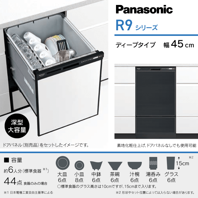 【工事費込み】NP-45RD9K|パナソニック 食洗機 R9シリーズ ドアパネル型 ブラック|幅45cm・ディープ(深型)タイプ・スライドオープン
