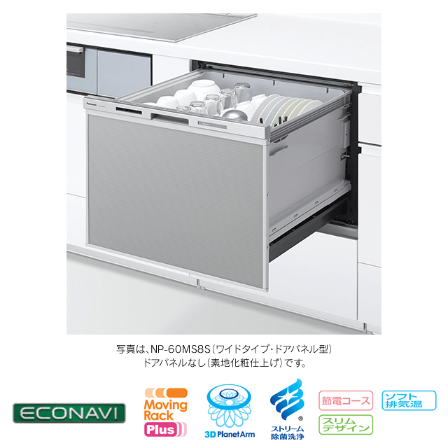 【工事費込み】NP-60MS8S|パナソニック 食洗機 M8シリーズ ドアパネル型|幅60cm・ワイドタイプ・スライドオープン