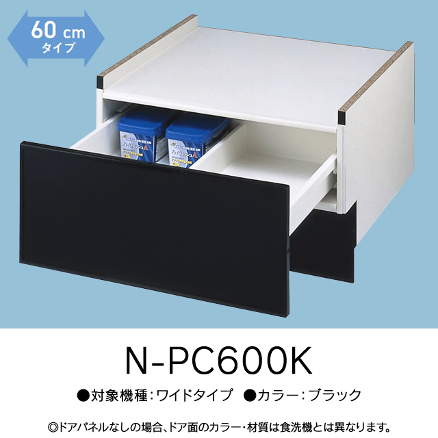 N-PC600K|ドアパネル型専用 下部収納キャビネット 幅60cm ワイドタイプ ブラック|パナソニック食洗機別売オプション